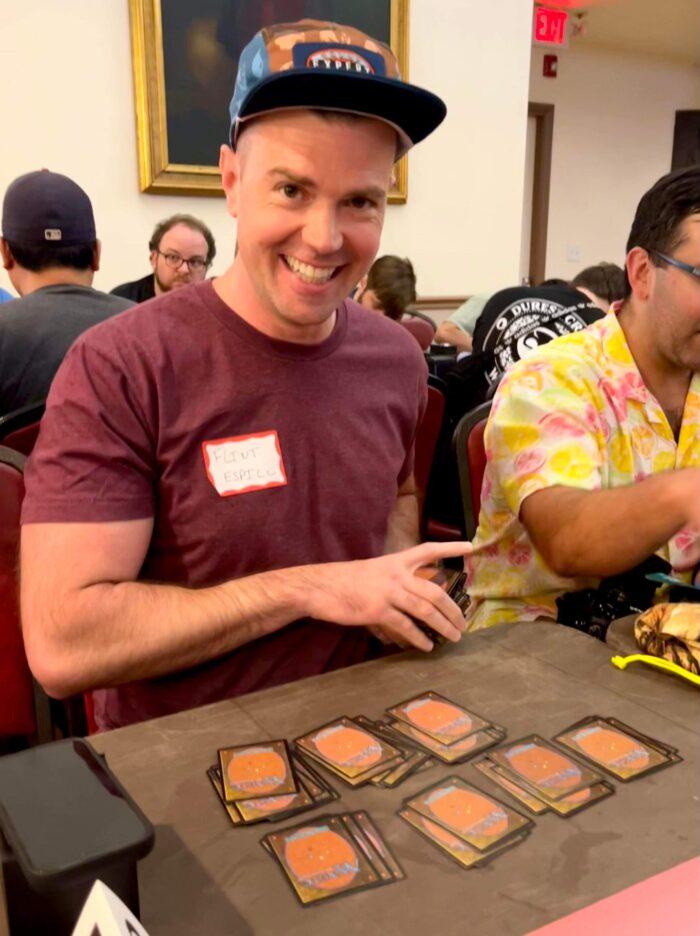 A lot of folks know Raph from the community and I was excited to meet him. Not only was he very polite, but hilarious. Raph noted that the Stabilizer gimmick is actually quite similar to the old Johnny Cage Friendship finisher where he autographs a photo. Not intended but perhaps I was inspired? In game 1 I drop a turn 2 Fluctuator, wait a few turns to play around Orim’s Chant or Abeyance (Raph suspiciously keeping white mana open and not making any plays) but eventually go for it.