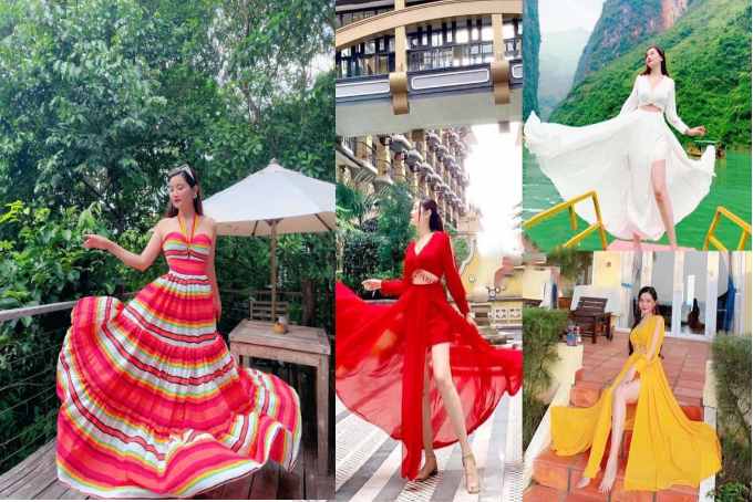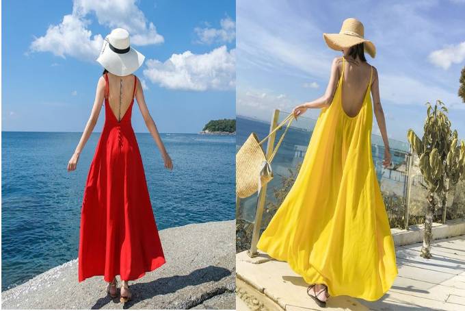 Khi chụp từ phía sau bạn hơi nghiêng đầu, thả cho tà váy bay trước gió. Chụp từ đằng sau hoặc góc bên thân để khoe bờ vai trần và tấm lưng trắng mịn, vừa khéo léo che chắn góc mặt một cách ẩn ý.