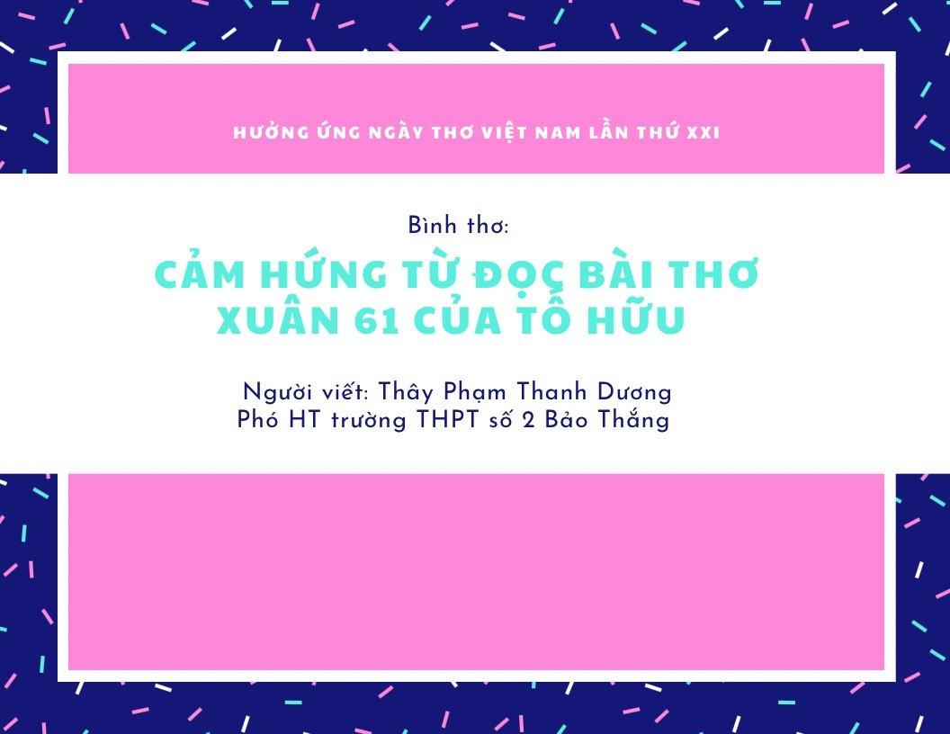 Rét nhiều nên ấm nắng hanhĐắng cay lắm mới ngọt lành đó chăng?Giã từ năm cũ bâng khuângĐã nghe xuân mới lâng lâng lạ thường! *Chào xuân đẹp! Có gì vui đấyHỡi em yêu? Mà má em đỏ dậyNhư buổi đầu hò hẹn, say mêAnh nắm tay em, sôi nổi, vụng vềMà nói vậy: “Trái tim anh đóRất chân thật, chia ba phần tươi đỏ:Anh dành riêng cho Đảng phần nhiềuPhần cho thơ, và phần để em yêu...”Em xấu hổ: “Thế cũng nhiều anh nhỉ!”Rồi hai đứa hôn nhau, hai người đồng chíDắt nhau đi, cho đến sáng mai nayAnh đón em về, xuân cũng đến trong tay! *Ô tiếng hót vui say con chim chiền chiệnTrên đồng lúa chiêm xuân chao mình bay liệngXuân ơi xuân, vui tới mông mênhBiển vui dâng sóng trắng đầu ghềnhThơ đã hát, mát trong lời chúc:Đường lên hạnh phúc rộng thênh thênh.Tam Đảo, Ba Vì vui núi xuân xanh...Chào 61! Đỉnh cao muôn trượngTa đứng đây, mắt nhìn bốn hướngTrông lại nghìn xưa, trông tới mai sauTrông Bắc trông Nam, trông cả địa cầu! *Trải qua một cuộc bể dâuCâu thơ còn đọng nỗi đau nhân tìnhNổi chìm kiếp sống lênh đênhTố Như ơi, lệ chảy quanh thân Kiều!Nghe hồn Nguyễn Trãi phiêu diêuTiếng gươm khua, tiếng thơ kêu xé lòng...Ôi tiếng của cha ông thuở trướcXin hát mừng non nước hôm nay:Một vùng trời đất trong tayDẫu chưa toàn vẹn, đã bay cờ hồng!Việt Nam, dân tộc anh hùngTay không mà đã thành công nên Người!Có gì đẹp trên đời hơn thếNgười yêu người, sống để yêu nhauĐảng cho ta trái tim giàuThẳng lưng mà bước, ngẩng đầu mà bay! *Đời vui đó, hôm nay mở cửaNhư dãy hàng bách hoá của taHỡi những người yêu, hãy ghé mua hoaVà đến đó, sắm ít quà lễ cưới:Lụa Nam Định đẹp tươi mát rượiLược Hàng Đào chải mái tóc xanh!Ta còn nghèo, phố chật nhà gianhNhưng cũng đủ vài tranh treo Tết.Đời vui đó, tiếng ca Đoàn kếtTa nắm tay nhau xây lại đời taRuộng lúa, đồng khoai, nương sắn, vườn càChuồng lợn, bầy gà, đàn trâu, ao cáDọn tí phân rơi, nhặt từng ngọn láMỗi hòn than, mẩu sắt, cân ngôTa nâng niu gom góp dựng cơ đồ! *Ồ thích thật, bài thơ miền BắcRất tự do nên tươi nhạc, tươi vầnCả không gian như xích lại gầnThời gian cũng quên tuần quên tháng.Đời trẻ lại. Tất cả đều cách mạng!Rũ sạch cô đơn, riêng lẻ, bần cùngQuê hương ta rộn rã cuộc vui chungNgười hợp tác nên lúa dày thêm đó.Đường nở ngực. Những hàng dương liễu nhỏĐã lên xanh như tóc tuổi mười lăm.Xuân ơi Xuân, em mới đến dăm nămMà cuộc sống đã tưng bừng ngày hộiNhư hôm nay, giữa công trường đỏ bụiNhững đoàn xe vận tải nối nhau điHồng Quảng, Lào Cai, Thái Nguyên, Việt TrìTên đất nước reo vui bao tiếng gọi... *Nào đi tới! Bác Hồ ta nóiPhút giao thừa, tiếng hát đêm xuânKế hoạch năm năm. Mời những đoàn quânMời những bàn chân, tiến lên phía trước.Tất cả dưới cờ, hát lên và bước!Đi ta đi! Khai phá rừng hoangHỏi núi non cao, đâu sắt đâu vàng?Hỏi biển khơi xa, đâu luồng cá chạy?Sông Đà, sông Lô, sông Hồng, sông ChảyHỏi đâu thác nhảy, cho điện quay chiều?Hỡi những người trai, những cô gái yêuTrên những đèo mây, những tầng núi đáHai bàn tay ta hãy làm tất cả!Xuân đã đến rồi. Hối hả tương laiKhói những nhà máy mới ban mai... *Tôi viết cho ai bài thơ 61?Đêm đã khuya rồi, rét về tê buốtHà Nội rì rầm... Còi thổi ngoài gaMột chuyến tàu chuyển bánh đi xaTiếng xình xịch, chạy dọc đường Nam Bộ...Ôi đâu phải con tàu! Trái tim ta đó.Tiếng đập thình thình, muốn vỡ làm đôi!Ta biết em rất khoẻ, tim ơiKhông khóc đấy. Nhưng sao mà nóng bỏngNhư lửa cháy trong lòng ta gió lộng?Mấy hôm nay, như đứa nhớ nhàTa vẩn vơ hoài, rạo rực, vào raNghe tiếng mõ và nghe tiếng súngMiền Nam dậy, hò reo náo động!Ba con tôi đã ngủ lâu rồiCòn bao nhiêu chưa được ngủ trong nôiMiền Bắc thiên đường của các con tôi! *Gà gáy sáng. Thơ ơi, mang cánh lửaHãy bay đi! Con chim kêu trước cửaThêm một ngày xuân đến. Bình minhCành táo đầu hè quả ngọt rung rinhNhư hạnh phúc đơn sơ, ước mơ nho nhỏTreo trước mắt của loài người ta đó: Hoà bình Độc lập Ấm no Cho Con người Sung sướng Tự do!