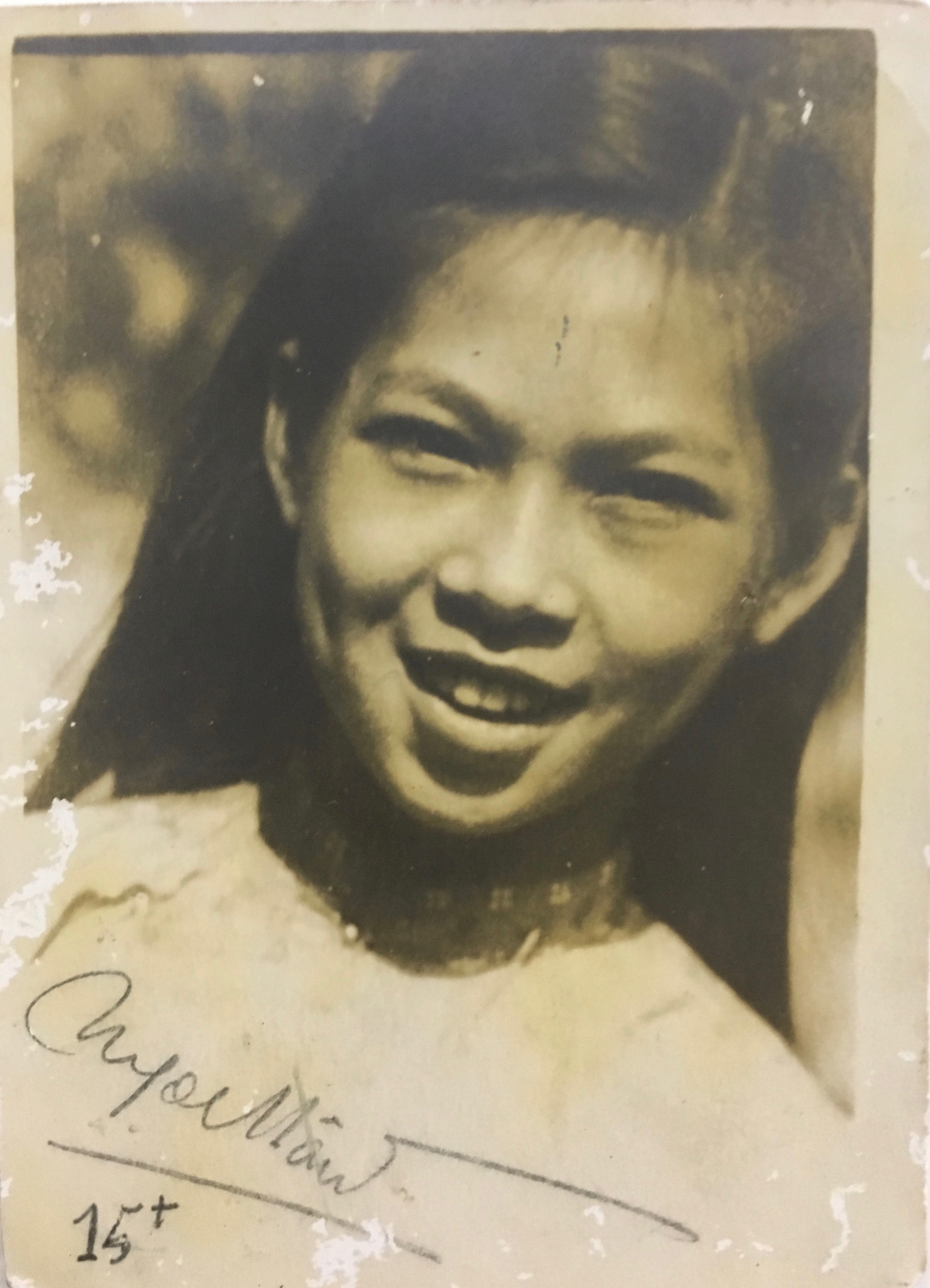 Bà Hân: À, ảnh này chụp ở nơi tản cư. Bà năm ấy lên lớp 1 (khoảng 6-7 tuổi), vì chiến tranh nên tản cư về quê ngoại học ở một trường làng.