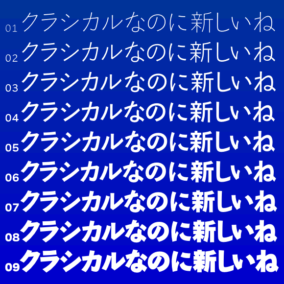 Đây là phông chữ theo phong cách cổ điển kết hợp giữa phông chữ Zen Kaku Gothic Antique với các góc bo tròn và phông chữ Zen Maru Gothic. Thiết kế đơn giản, tròn và dễ thương nên có thể sử dụng trong nhiều trường hợp, không chỉ để tạo vẻ cổ điển.
