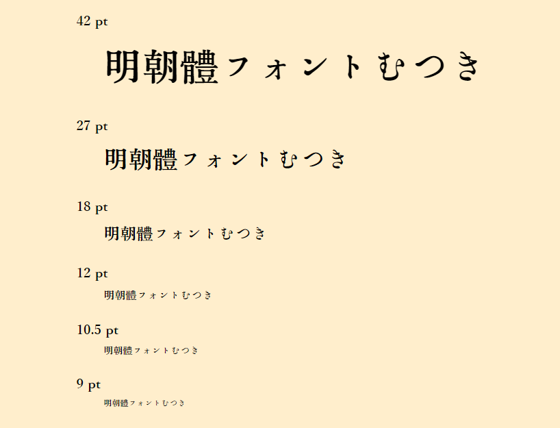 Phông chữ này là phông chữ Nhật Bản cổ kết hợp các ký tự kanji gothic bo tròn với các ký tự serif kana có vảy theo phong cách thời nhà Minh. Nên sử dụng trong những tình huống bạn muốn tạo cảm giác hoài niệm, u sầu hoặc hoài niệm.