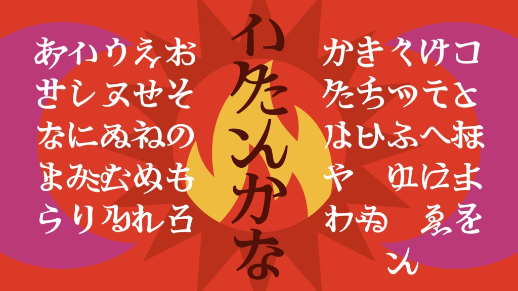 Đây là kiểu chữ kana dựa trên họa tiết logo thương hiệu đồ gia dụng thời Showa mang nét hoài cổ. Đặc điểm nổi bật của nó là nhấn mạnh vào các đường chéo và có thể sử dụng cho cả văn bản theo chiều dọc và chiều ngang. Tôi sắp xếp nó theo hình vuông để cân bằng nhất có thể. Tôi nghĩ việc tăng chiều rộng ký tự lên 110% sẽ tạo ra tác động lớn hơn cho logo.