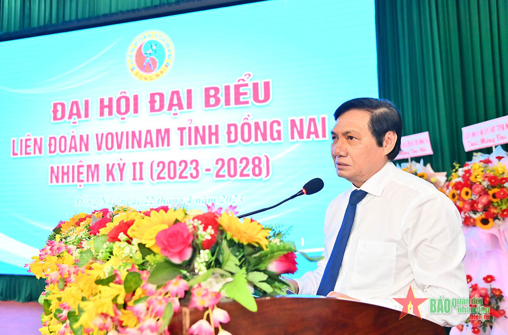 Lãnh đạo tỉnh Đồng Nai phát biểu chúc mừng đại hội. Nhiệm kỳ 2018-2023, Liên đoàn Vovinam Đồng Nai hoạt động thường xuyên và đạt nhiều kết quả nổi bật. Phong trào tập luyện Vovinam được duy trì đều đặn ở 11 huyện, thành phố và 13 câu lạc bộ thuộc lực lượng vũ trang tỉnh. Liên đoàn hiện có 21 võ sư cao đẳng và 150 huấn luyện viên, hướng dẫn viên trung đẳng.