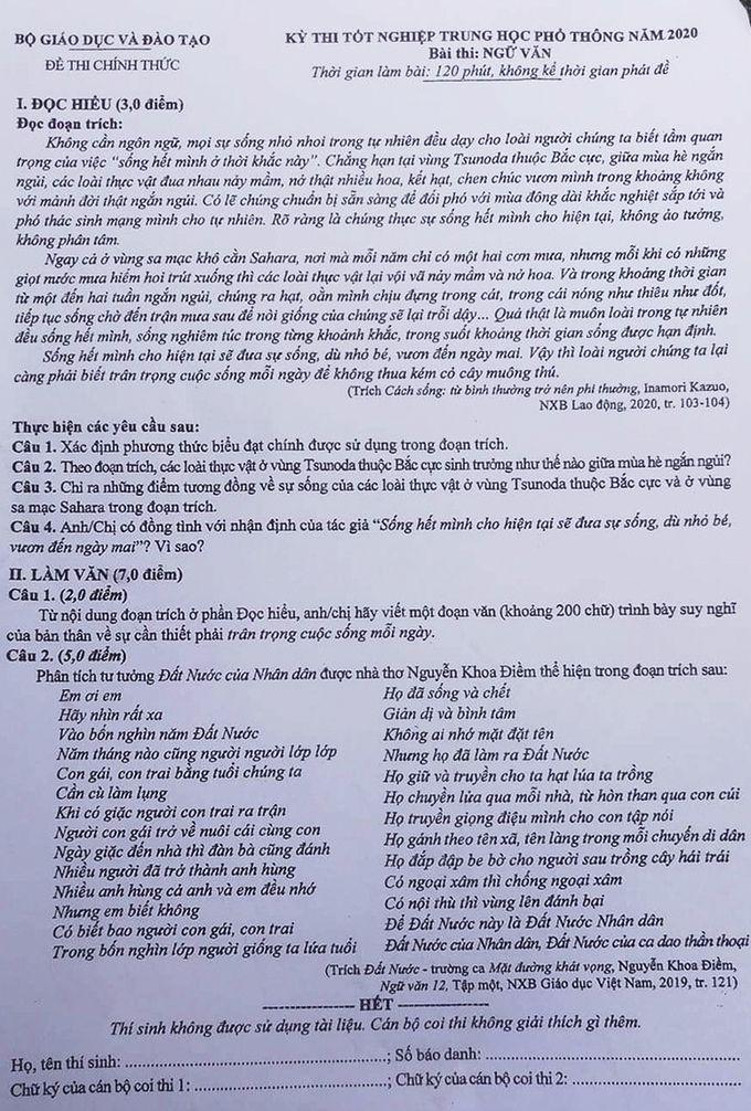 Ví dụ minh họa: Đề và hướng dẫn chấm môn Ngữ Văn trong kì thi tốt nghiệp trung học phổ thông năm 2020.