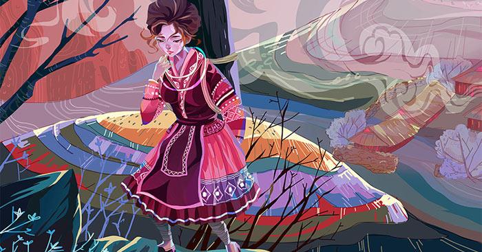 - Vốn là người con gái xinh đẹp, có tài thổi sáo và kèn lá.