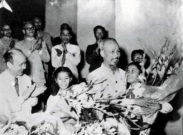 Chủ tịch Hồ Chí Minh tại Đại hội thành lập Mặt trận Tổ quốc Việt Nam, tổ chức tại Hà Nội, tháng 9-1955. Ảnh tư liệu: danvan.vn.