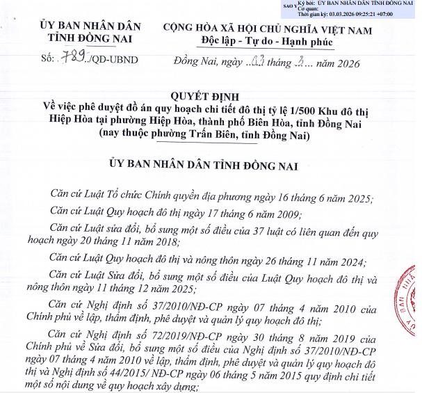 Theo UBND tỉnh Đồng Nai, việc phê duyệt quy hoạch chi tiết khu đô thị Hiệp Hòa nhằm cụ thể hóa định hướng phát triển đô thị của TP Biên Hòa trong giai đoạn tới.