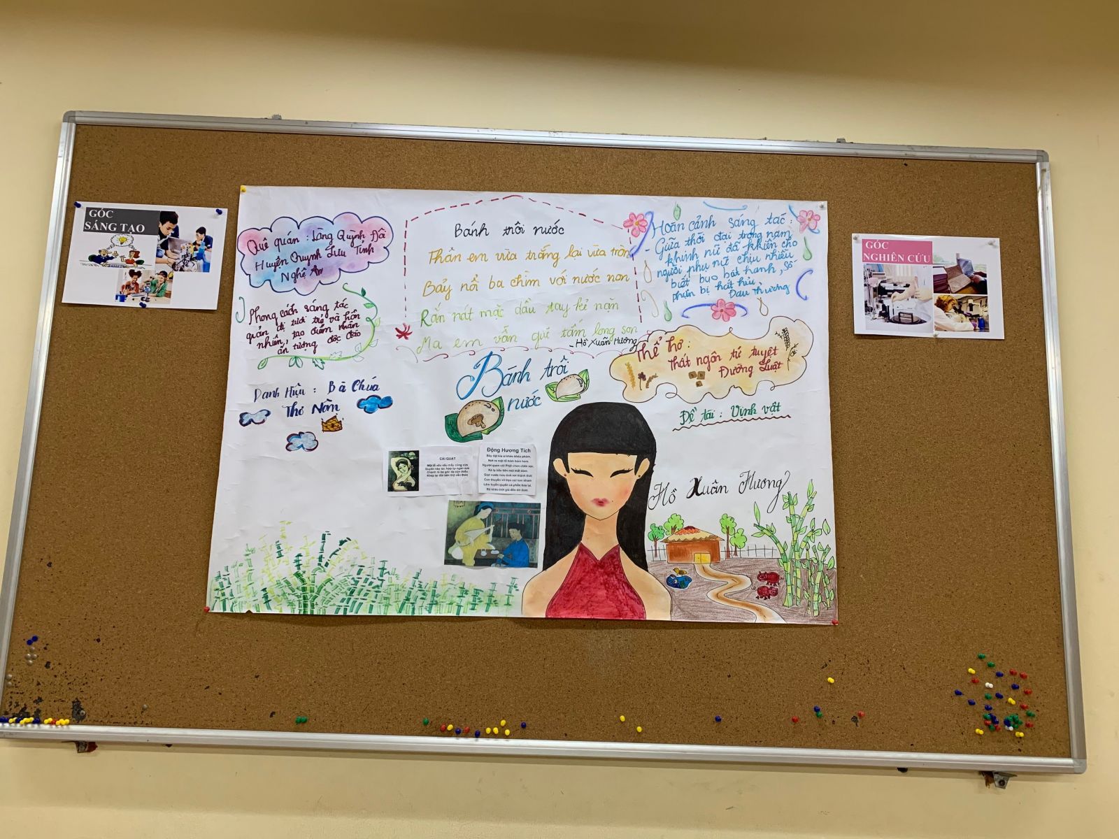 Tiết học mở đầu với “Góc nghiên cứu”, học sinh lớp 7A7 thuyết trình dự án tìm hiểu về nhà thơ “Hồ Xuân Hương” và bài thơ “Bánh trôi nước”.