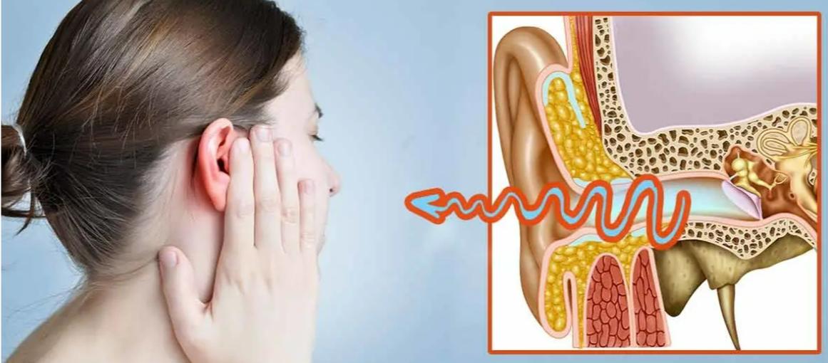 - Cảm giác ù tai rõ rệt, có thể nghe thấy tiếng lách tách hoặc cảm giác như có nước trong tai.