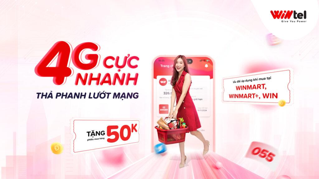 Tin vui cho các tín đồ mê data: Chỉ từ 4K/ngày thỏa sức truy cập data 4g không giới hạn với hơn 600 phút gọi nội, ngoại mạng. Ngoài ra, Khách hàng còn được tặng thêm voucher mua sắm trị giá 50.000đ khi kích hoạt, đăng ký thuê bao thành công. Ưu đãi áp dụng khi mua tại WinMart, WinMart+, WiN.