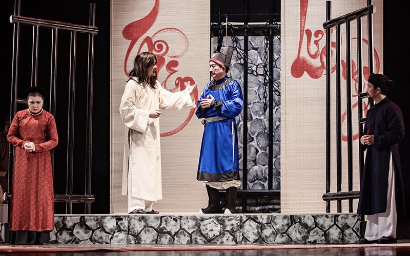 Quản ngục (nghệ sĩ Văn Hải thủ vai) vốn là tên cai ngục độc ác nhưng lại yêu thích cái đẹp như trà đạo, thư pháp. Trong khi đó, Huấn Cao (nghệ sĩ Anh Tuấn thủ vai) nổi tiếng với tài viết chữ nhanh và đẹp, vì chống lại triều đình mà trở thành tử tù. Vì muốn có chữ của Huấn Cao, Quản ngục đã lệnh cho Viên thư lại (nghệ sĩ Lâm Cương) phải tìm mọi cách, kể cả tra tấn để Huấn Cao viết chữ bằng được. Song dẫu chịu bao đòn roi đau đớn, người tử tù vẫn một mực kiên định không cho chữ bởi ông quan niệm chữ chỉ dành cho người xứng đáng có thiên lương cao quý.