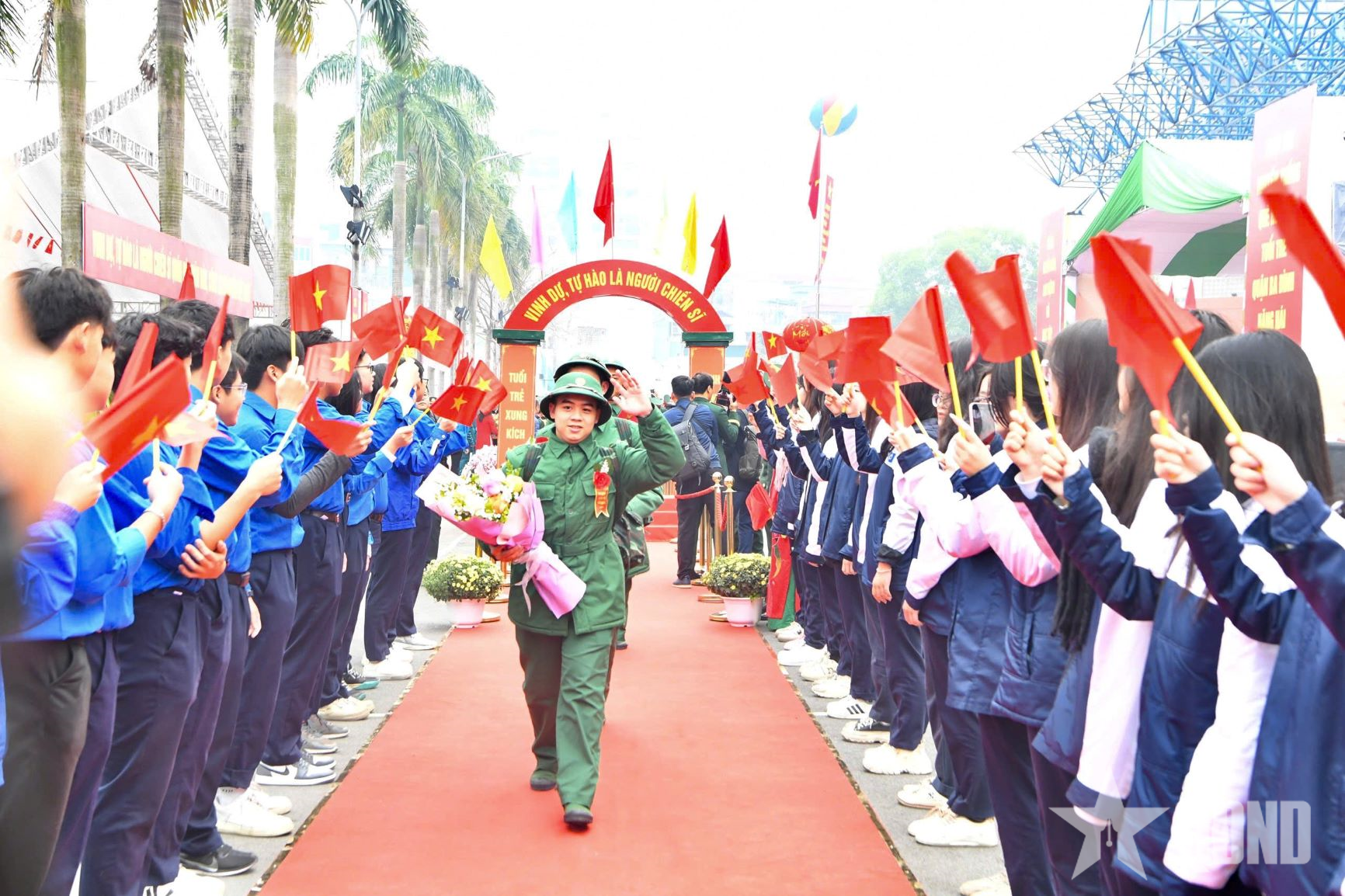 Thanh niên quận Ba Đình (Hà Nội) phấn khởi lên đường nhập ngũ năm 2025. Ảnh: PHẠM HƯNG 3. Trong mã gene của người Việt Nam, hầu như ai cũng có ít nhiều phẩm chất trung kiên, can trường, chịu thương chịu khó của người lính. Bởi trên hành trình hai thiên niên kỷ (tính từ dấu mốc cuộc khởi nghĩa Hai Bà Trưng năm 40 đến nay), dân tộc Việt có tới hai phần ba thời gian phải dồn sức người, sức của của toàn dân để chống lại các thế lực ngoại bang xâm lược, đánh tan ý chí thống trị, nô dịch của chúng và giành lại chủ quyền lãnh thổ thiêng liêng của Tổ quốc.