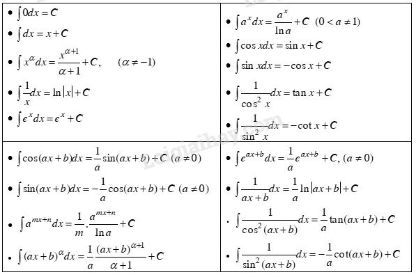 - Sử dụng công thức Newton - Leibnitz kết hợp với bảng nguyên hàm cơ bản ở trên