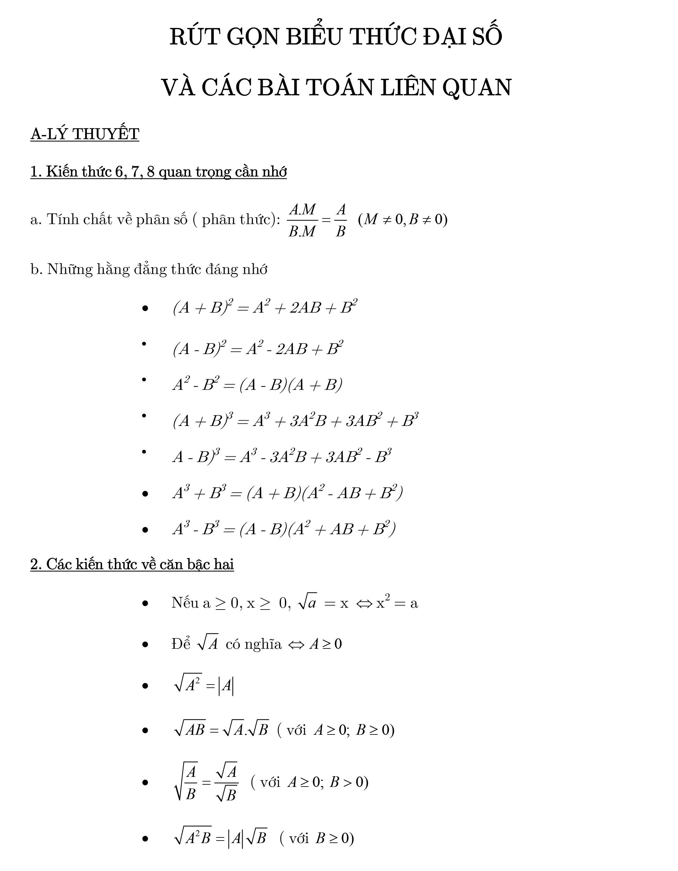 CHUYÊN ĐỀ 1: RÚT GỌN VÀ TÍNH GIÁ TRỊ CỦA BIỂU THỨC