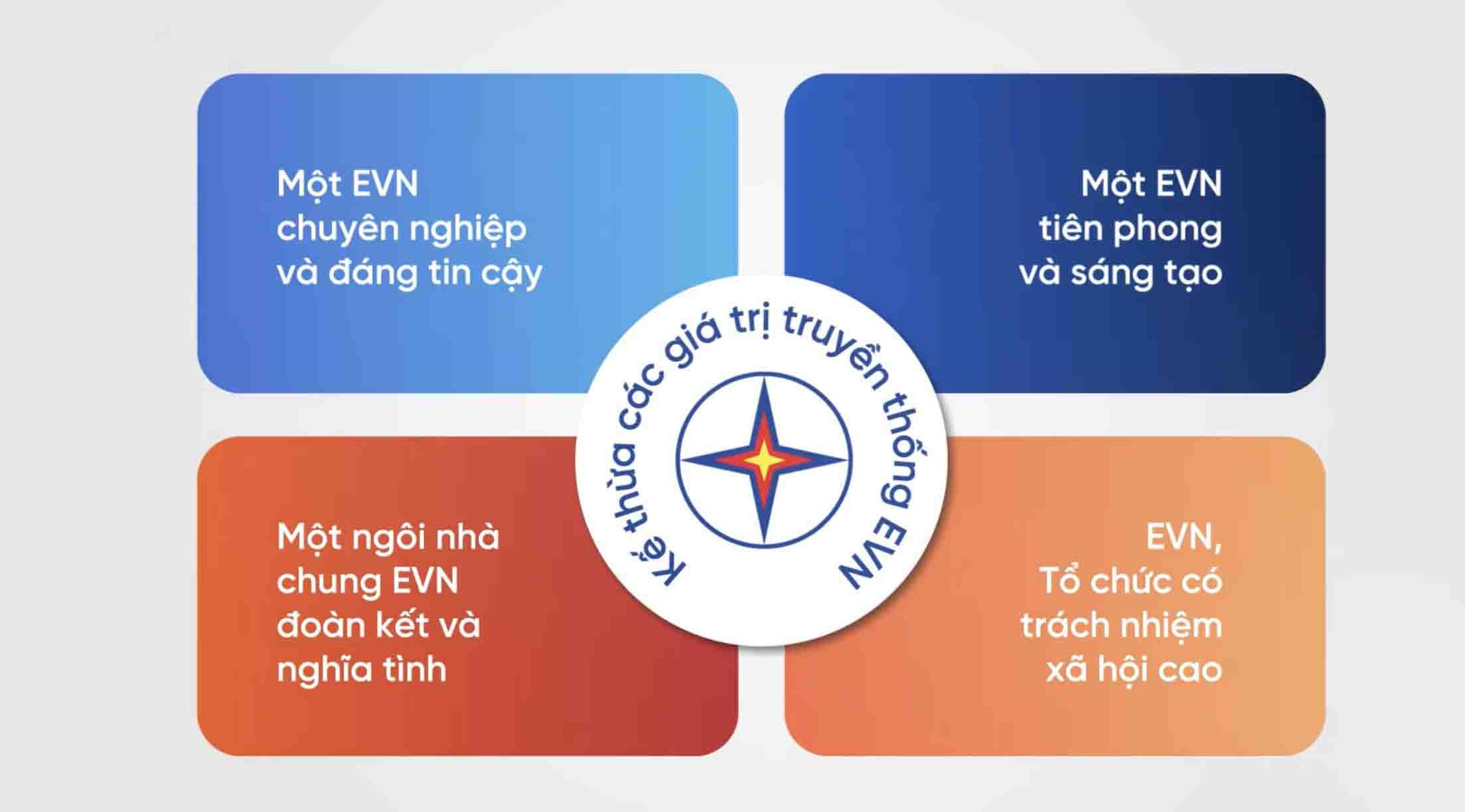 Theo đó, hành trình văn hóa EVN giai đoạn 2022-2025 sẽ duy trì và phát huy những giá trị văn hóa cao quý của EVN, đồng thời truyền cảm hứng mạnh mẽ cho mọi người dân cùng nhau thắp sáng lên niềm tin về một Việt Nam hùng cường, thịnh vượng, trong đó có những đóng góp lớn lao của EVN bằng những hành động, việc làm tốt đẹp và thiết thực nhất. Trong hành trình đó, Văn hóa EVN sẽ phát huy 5 giá trị cốt lõi là: “Niềm tin - Chất lượng - Tiên phong - Sáng tạo và Trách nhiệm” và 4 đặc trưng tiêu biểu là: “Một EVN chuyên nghiệp và đáng tin cậy - Một EVN tiên phong và sáng tạo - Một ngôi nhà chung EVN đoàn kết và nghĩa tình và EVN - tổ chức có trách nhiệm xã hội cao”.