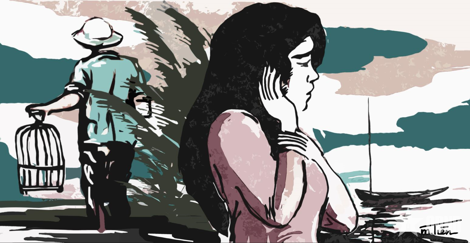 Minh họa: MẠNH TIẾN Thương lách sang một bên định đi thì bị Hai Giàu đang một tay cầm cái lồng sáo kéo lại bằng tay kia: “Chưa nói chuyện với anh mà em đi rồi hả?”. Cái giọng Hai Giàu nhừa nhựa làm cho Thương tưởng như đang nghe mấy con bò kêu giữa trưa ngoài đồng. Cô liếc anh một cái, rồi vùng mạnh tay ra: