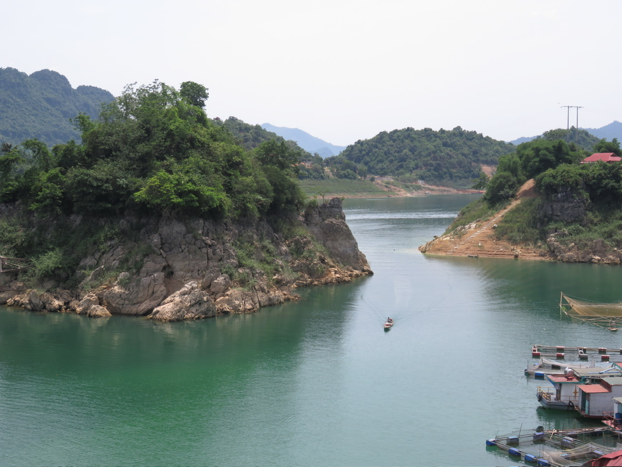 Như một vịnh Hạ Long thu nhỏ. Thỉnh thoảng, chúng tôi bắt gặp những ngọn núi đá vôi nhỏ soi bóng xuống dòng nước. Thoạt nhìn, cứ ngỡ là vịnh Hạ Long thu nhỏ.