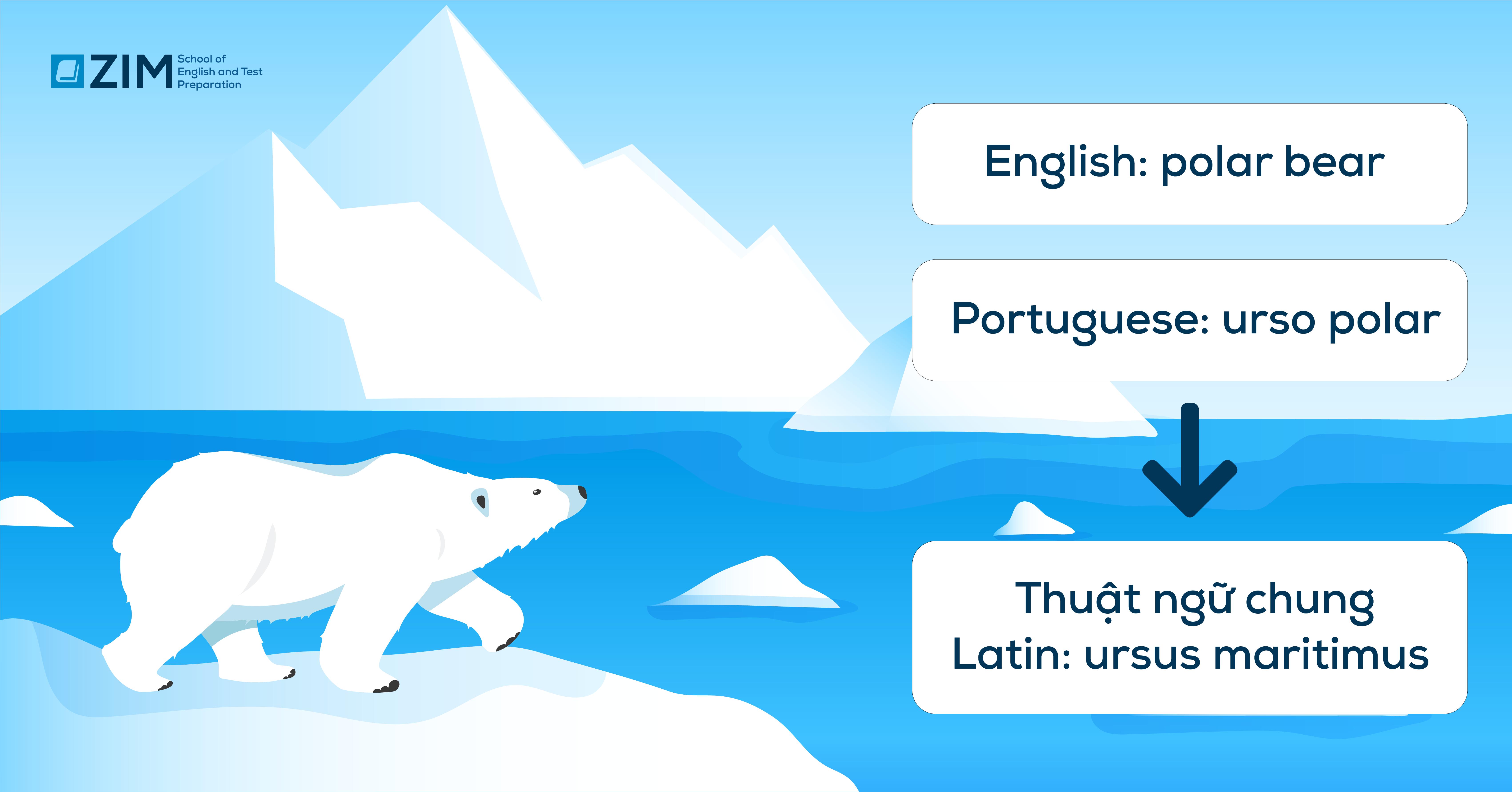 Gấu Bắc Cực được gọi là polar bear trong tiếng Anh, urso polar trong tiếng Bồ Đào Nha, nhưng các nhà khoa học đều dùng chung một thuật ngữ xuất phát từ tiếng Latin đó là ursus maritimus.
