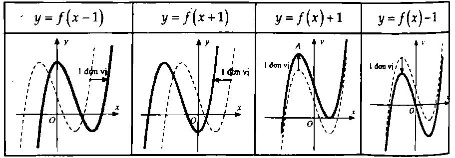 Khi đó, đồ thị các hàm số $y = f(x - 1)$, $y = f(x + 1)$, $y = f(x) + 1$, $y = f(x) - 1$ được suy ra từ đồ thị hàm số $y = f(x)$ như sau: