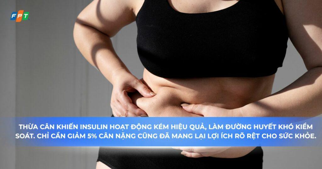 Ở người tiểu đường tuýp 2, thừa cân làm tăng đề kháng insulin, khiến việc kiểm soát đường huyết trở nên khó khăn hơn. Chỉ cần giảm khoảng 5% trọng lượng cơ thể cũng đã giúp: